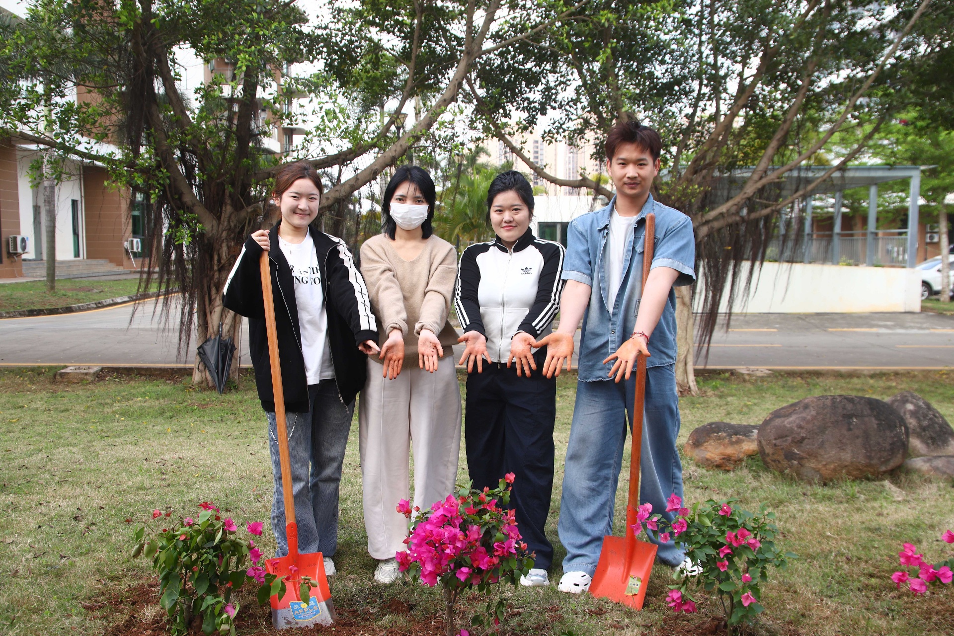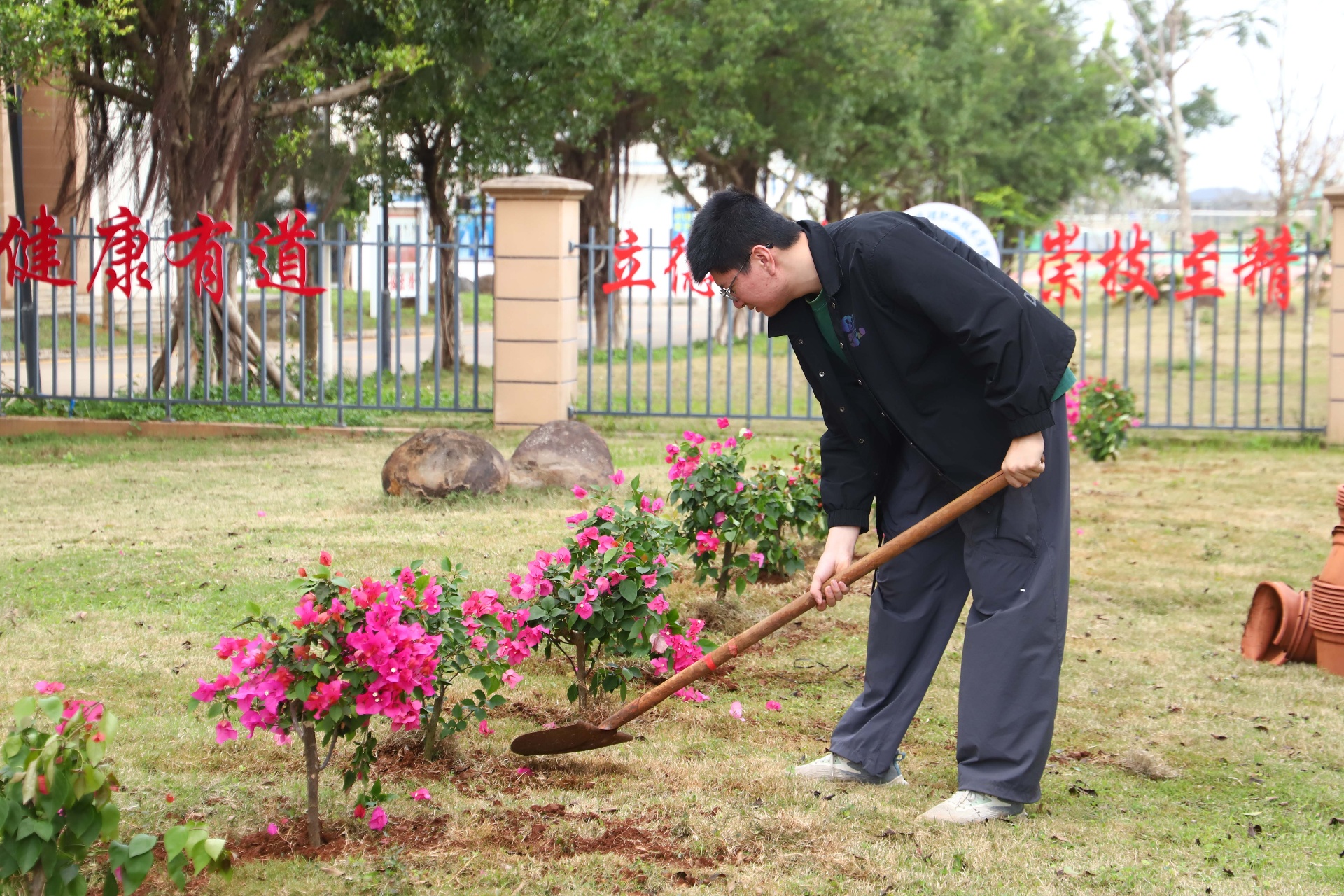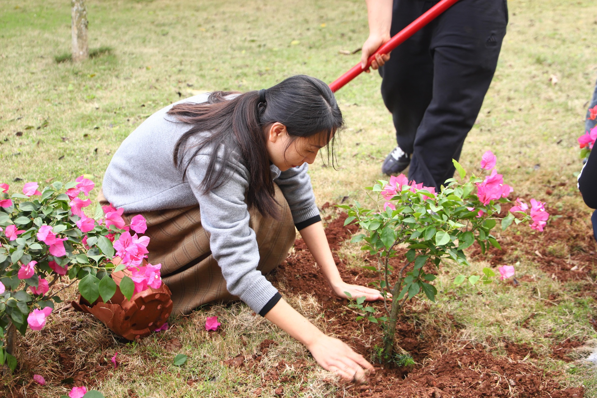 活动现场,学院领导与师生分组协作、分工配合,大家或挥锹铲土,或扶正树苗,或提桶浇水,每一个环节都一丝不苟,现场一派热火朝天的景象。新栽三角梅错落有致、迎风挺立,为初春的校园增添了勃勃生机。